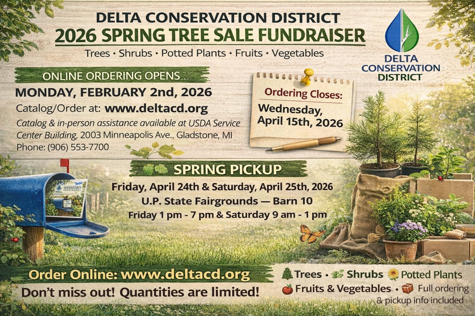 Delta Conservation District's 2026 pre-order opens on February 2nd and closes April 15th. Make sure to order early while supplies last.